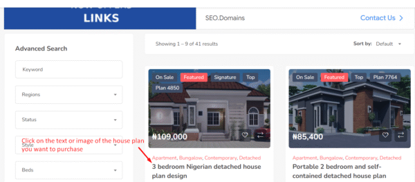 Depending on how you came into the site, once you click any of the house plan choices, it will take you to the house plan single page where you will be able to see more image views and details about the specific house plan.
