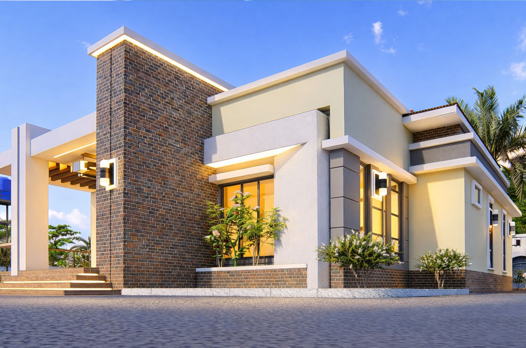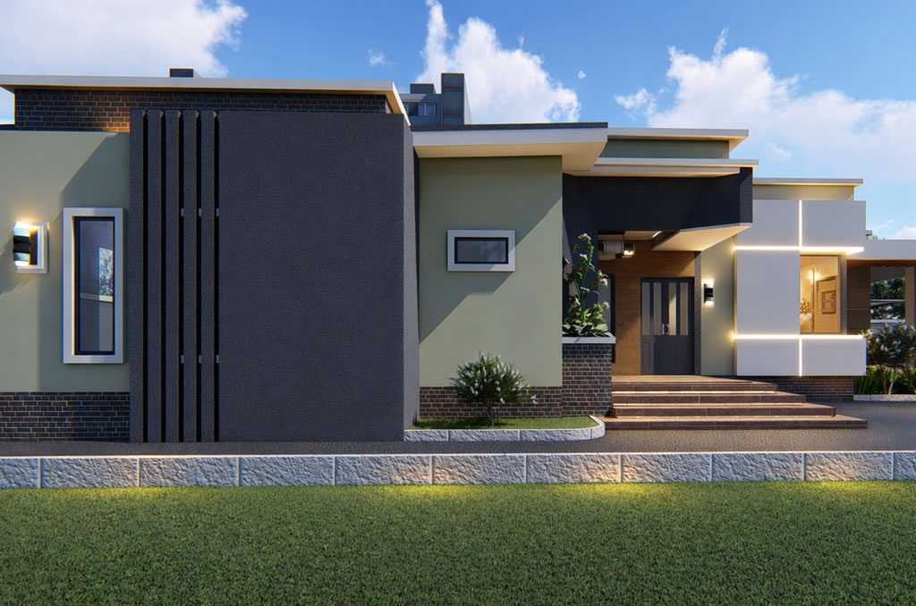 This 4-bedroom bungalow is designed with a clear separation between social spaces and service areas, giving the house a more segmented layout rather than an open-plan concept. The overall arrangement focuses on privacy, especially in the bedroom and kitchen zones, while still providing multiple living areas for family use.