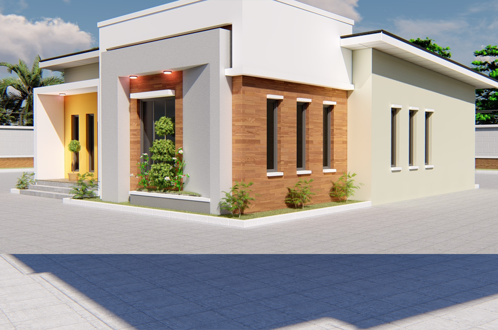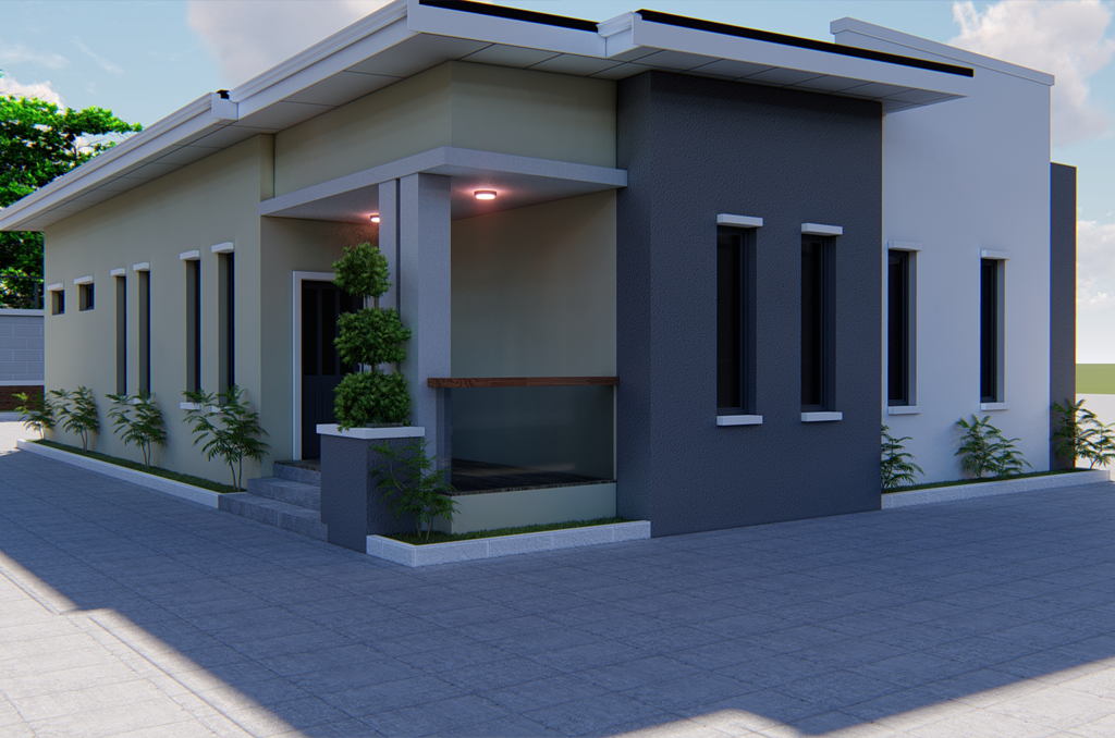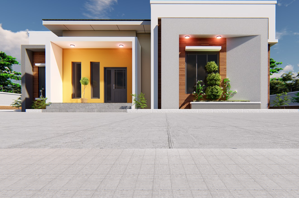 This contemporary 3-bedroom residential house design combines functionality, comfort, and modern aesthetics. With an overall length of 14 meters and a width of 11.75 meters, the design is compact yet spacious, making it a practical choice for mid-sized plots. It is thoughtfully designed to balance privacy and open living, ensuring it caters to both family and social needs.