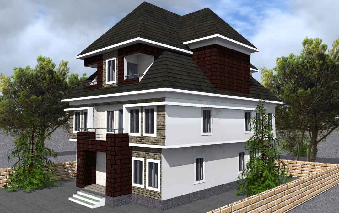 If you are looking for a way to manage your building development on a half plot of land in such a way as to accommodate a 4-bedroom duplex house plan, consider this 4-bedroom duplex house design concept.