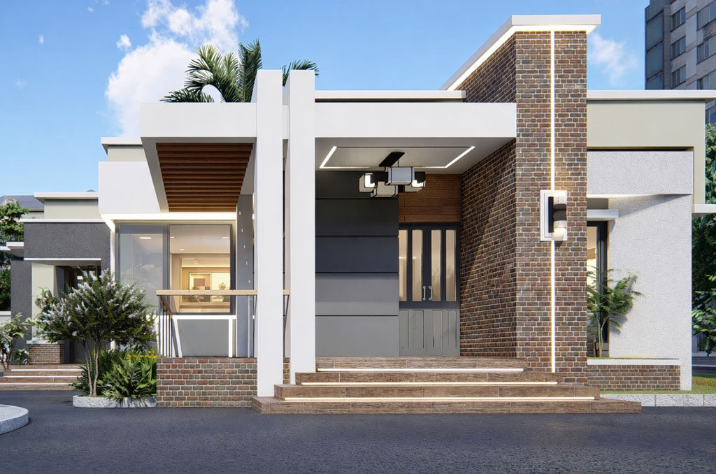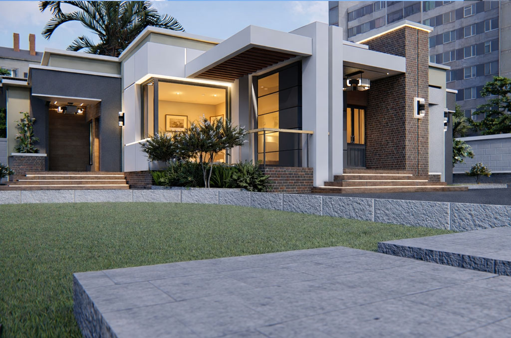 This 4-bedroom bungalow is designed with a clear separation between social spaces and service areas, giving the house a more segmented layout rather than an open-plan concept. The overall arrangement focuses on privacy, especially in the bedroom and kitchen zones, while still providing multiple living areas for family use.