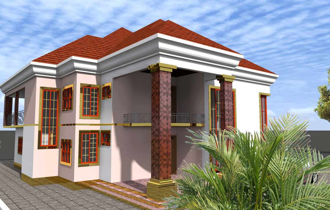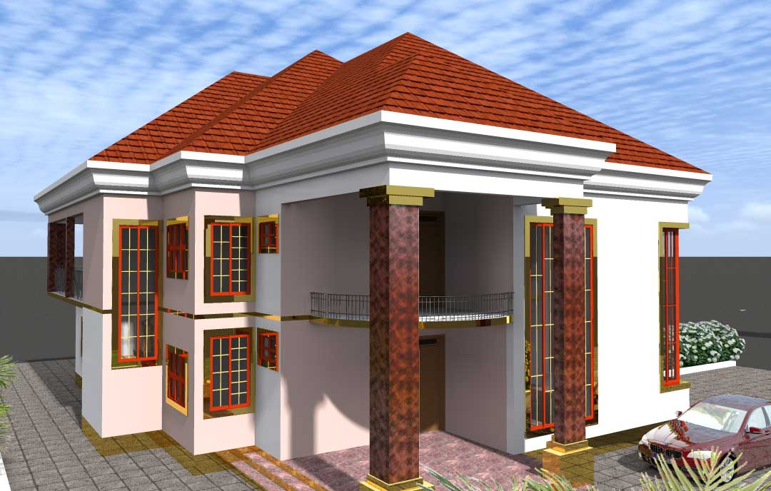 The design of this 5-bedroom simple duplex starts with a welcoming entrance porch that leads you straight into a central lobby. This lobby acts like the heart of the ground floor, giving you easy access to different parts of the home. Just beside it is a quiet study room—perfect for reading, work, or personal tasks. The visitor’s toilet is also conveniently located here so guests don’t have to walk through the private areas of the house. From the lobby, you naturally flow into the main lounge, which is one of the most impressive spaces in the home. It is designed as a double-volume living area, giving you a grand, airy feel with plenty of light and openness. This lounge connects smoothly to the dining area and a small bar corner, making it great for family gatherings and entertaining visitors.