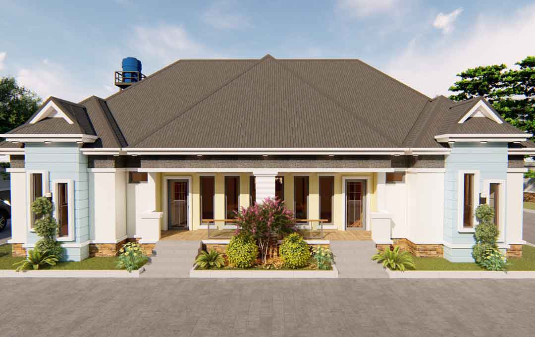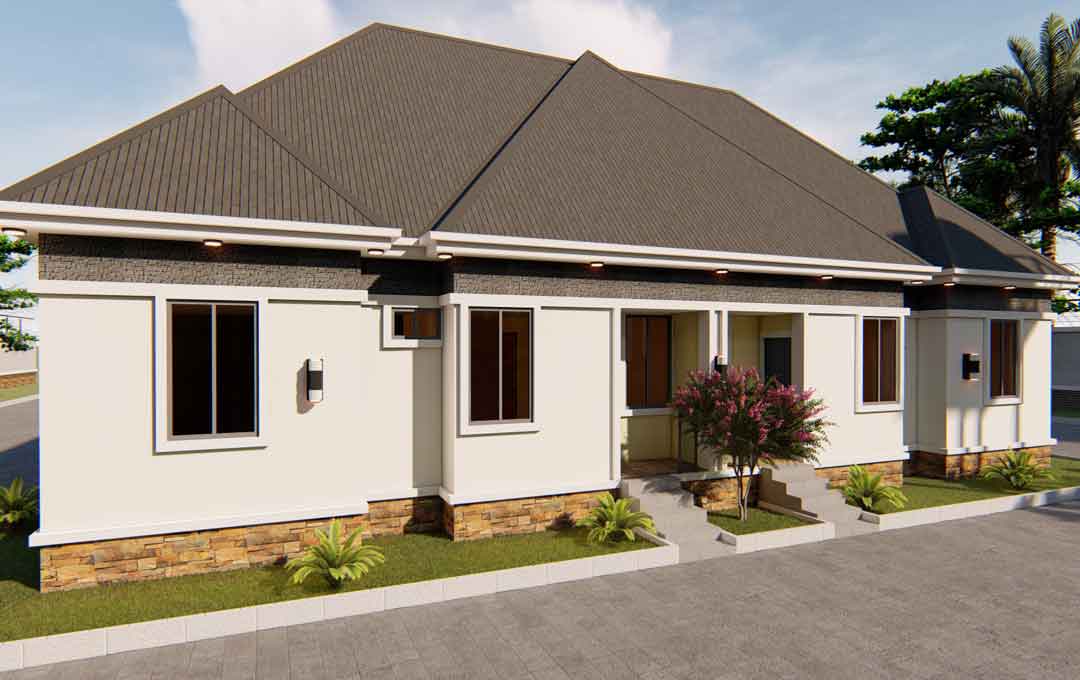 This Modern 2-Bedroom Semi-Detached Bungalow is designed to offer comfortable living within a compact and well-organized layout. The ground-floor plan reflects a modern approach to space planning, combining functionality, privacy, and ease of movement. It is ideal for small families, couples, or homeowners seeking a simple yet efficient bungalow design that works well on standard residential plots.