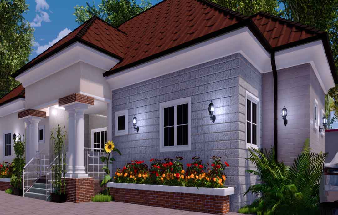 From the entrance porch, the house opens into a welcoming lobby, which acts as a transition space between the outdoors and the main living areas. The lobby leads directly into a generously sized sitting room, designed to accommodate multiple seating arrangements for family relaxation and visitors. Adjacent to the sitting room is the dining area, positioned for convenience and easy access to the kitchen. This open relationship between sitting and dining spaces reflects a modern Nigerian lifestyle where family interaction and entertaining are important.